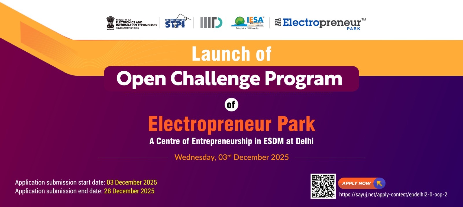 | Open Challenge Program of Electropreneur Park 2.0 | https://sayuj.net/apply-contest/epdelhi2-0-ocp-2 | Dec 03, 2025 to Dec 28, 2025 | View |